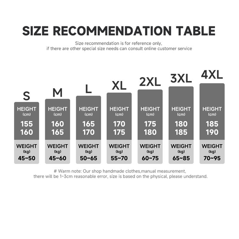 NOTE: If you are not sure, please choose a larger size. If you have any doubts about this product, we suggest you contact our customer service team. Due to the color difference between the screens of different electronic devices (computers, mobile phones or ipads), especially the CRT screen and the LCD screen, the color of the item may be slightly different from what you see in the photos, please take the actual product as the standard.