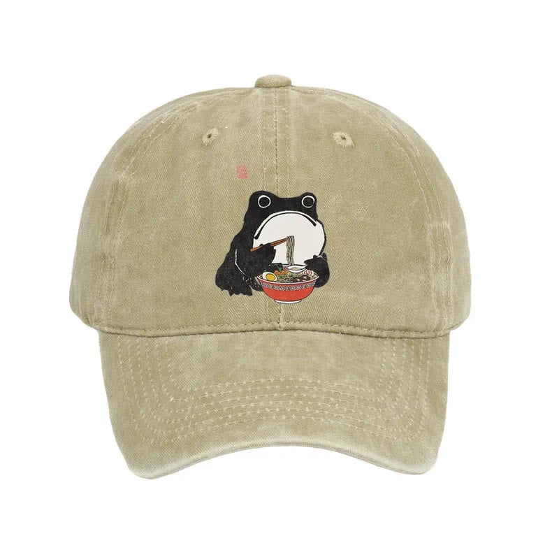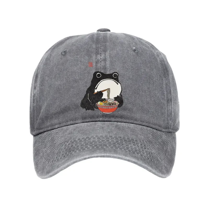 Unisex 100% Cotton Funny Frog Eating Ramen Vintage Print Cap